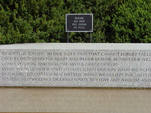 A quote at the reflecting pool